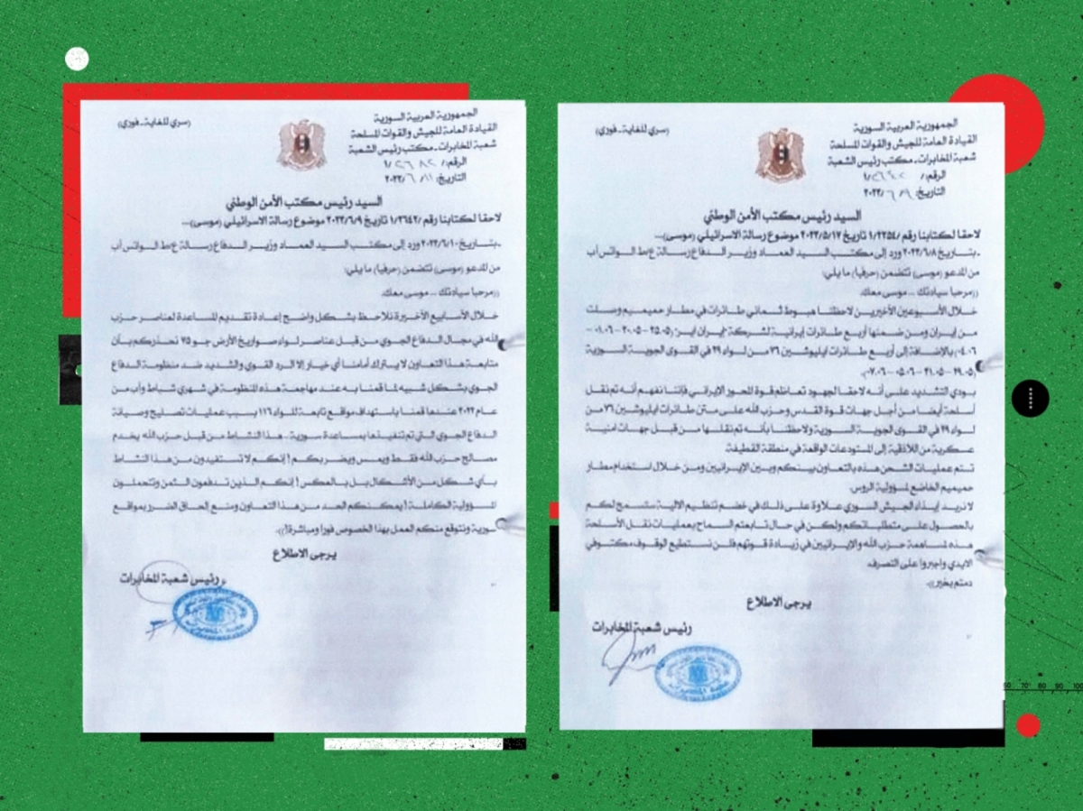 تنشر “المجلة” وثائق مصنفة “سري للغاية” عثر عليها بعد سقوط نظام بشار الأسد، وهي تكشف رسائل موجهة من شخصية إسرائيلية تدعى “موسى” إلى رئيس شعبة المخابرات السورية والذي رفعها بدوره إلى رئيس مكتب الأمن الوطني. أبرز ما كشفته هذه الوثائق هو وجود آلية لتبادل الرسائل بين الجيش السوري والجهات الإسرائيلية برعاية روسيا، “تسمح بسد حاجات الجيش من دون مخاطرة بمواقع وبنى تحتية يستغلها الإيرانيون”. كما تظهر الرسائل رصد إسرائيل لتعاون الجيش السوري مع “حزب الله” وإيران، وتحذره من مواصلة نشاطه معهما وإلا “سيدفع ثمنا غير مسبوق”، مع التأكيد على “عدم الرغبة بالعمل ضدّه”.